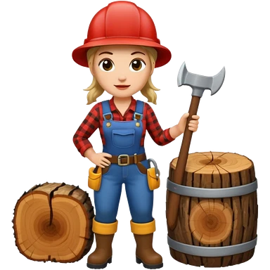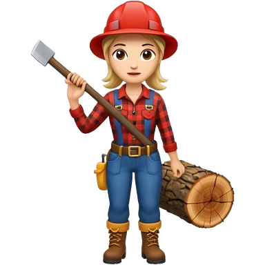 lumberjack blonde woman holding axe pink checked shirt and overall emoji