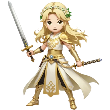 White and golden Lumine (from Genshin Impact) with a sword (full body) emoji