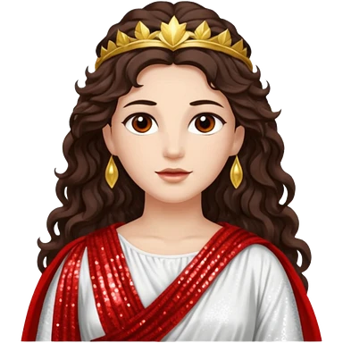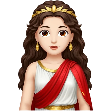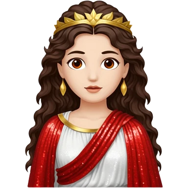 Libertas, Goddess of Freedom from Roman Deities with long dark brown wavy hair, white and red sequin toga emoji