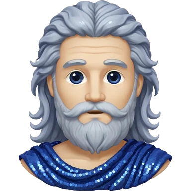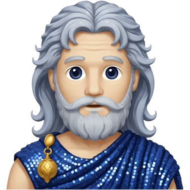 Saturn, God of Time from Roman Deities with long gray wavy hair and beard, indigo sequin toga emoji