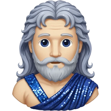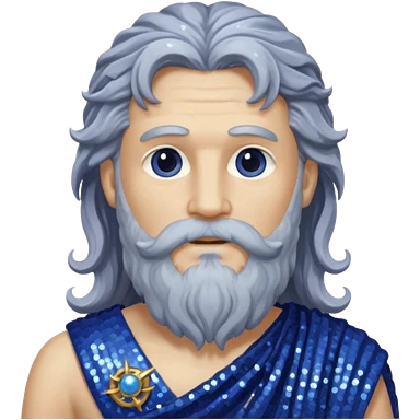 Uranus, God of Air from Roman Deities with long white wavy hair and beard, pale cyan sequin toga emoji