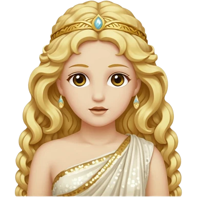 Aura, Goddess of Breeze from Roman Deities with long platinum blonde wavy hair, white sequin toga emoji