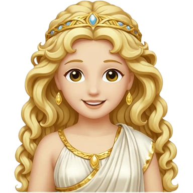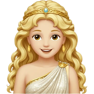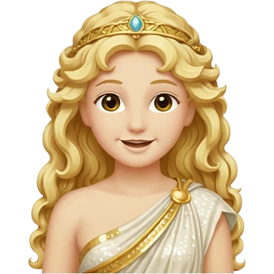 Psyche, Goddess of Soul from Roman Deities with long golden blonde wavy hair, ivory sequin toga emoji