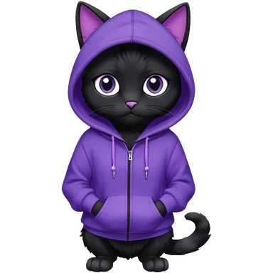 Black cat wearing a violet hoodie fursona (full body) emoji