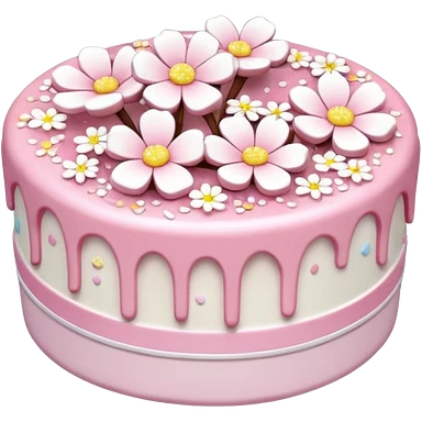 Pastel shiny glittery pastel pink and white Sakura flowers cake with sprinkles on top emoji