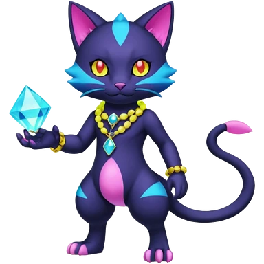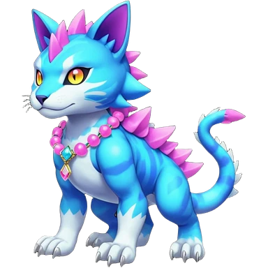 Colorful neon glowing abyssal gatomon-purloin-feline-Fakemon-Digimon-creature wearing a cool casual fashionable aesthetic clothes and accessories and jewelries and apparels fursona (full body) emoji