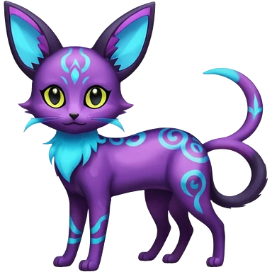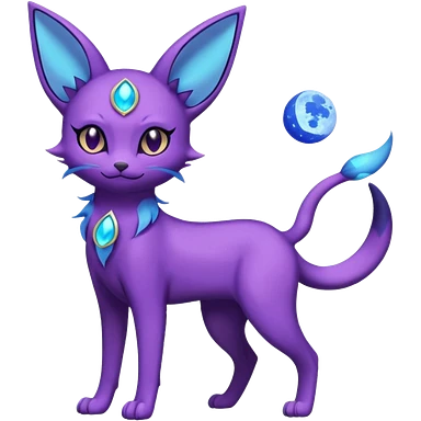 Magical bioluminescent Lunar Espeon-Umbreon-Purrloin-Delcatty-cat-fusion (full body) emoji