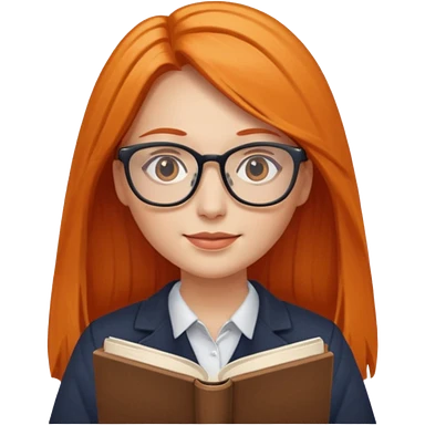 Long Hair Women with Book, Orange straight Hair, glasses emoji