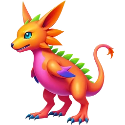 exotic lush warm-colored neon-colored Digimon-Fionbri-creature emoji