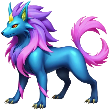 pastel dark bright vibrant futuristic lush warm-colored neon-glowing electric maned Luxray-Suicune-Manectric-Fakémon-Vernid-Digimon-hybrid-creature (full body) emoji