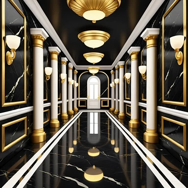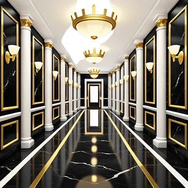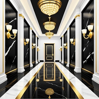 Luxurious black marble hallway stairs with gold and white accents emoji