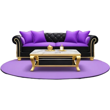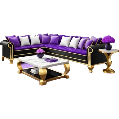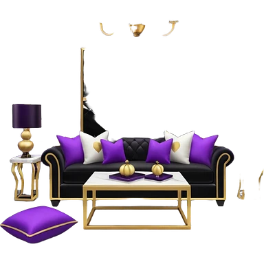 Luxurious black marble living room with gold and white accents and with a purple accented pillow emoji