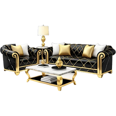 Luxurious black marble living room with gold and white accents emoji | AI Emoji Generator