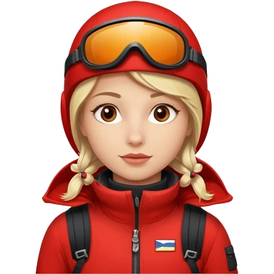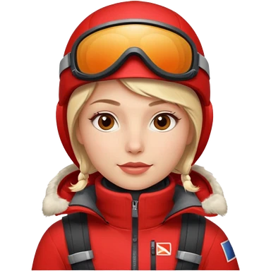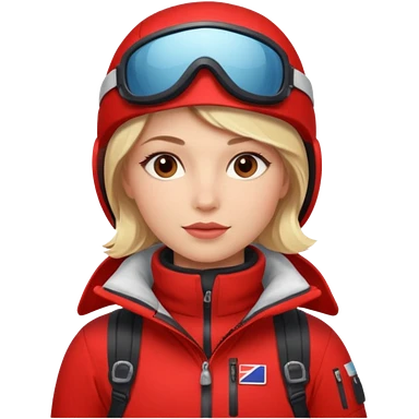 Luxury blonde model, brown eyes, polar explorer, red clothes, skiing outfit emoji | AI Emoji Generator