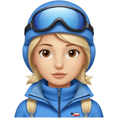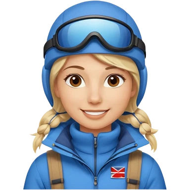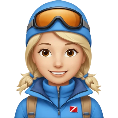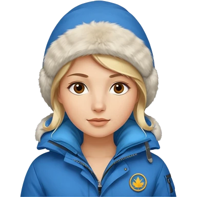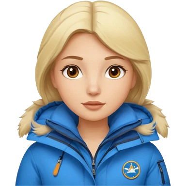 Luxury blonde model, brown eyes, polar explorer, blue clothes, skiing clothes emoji