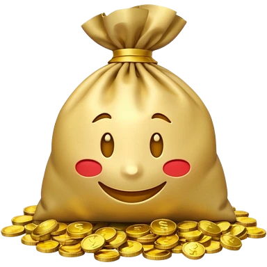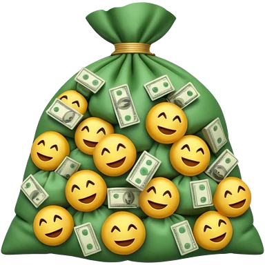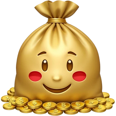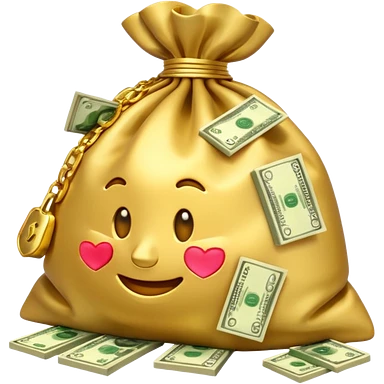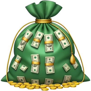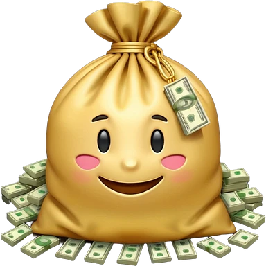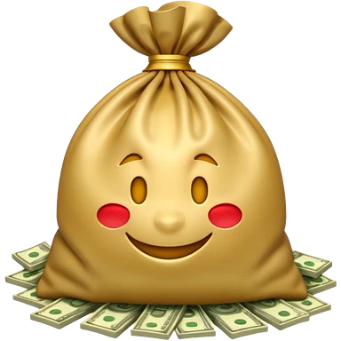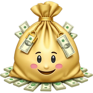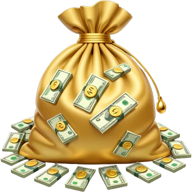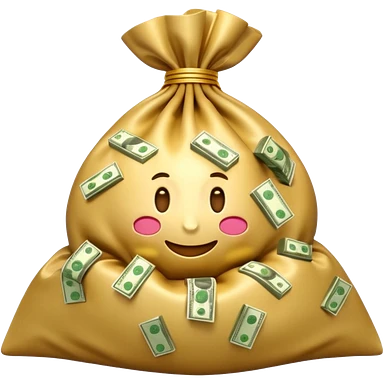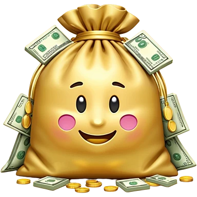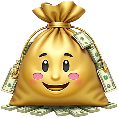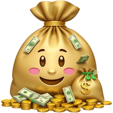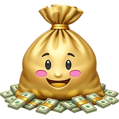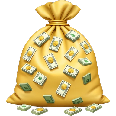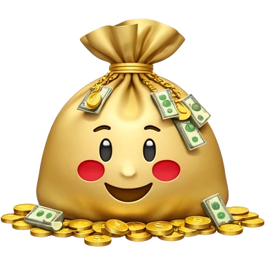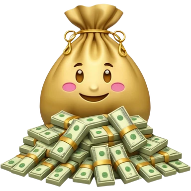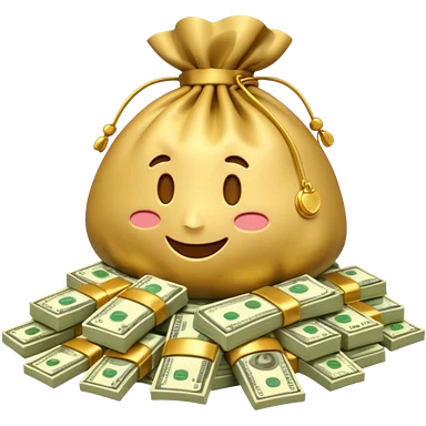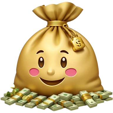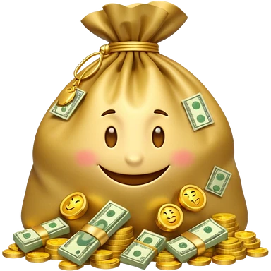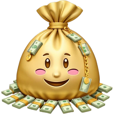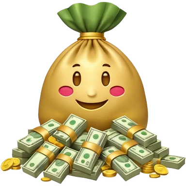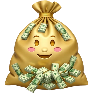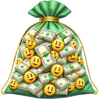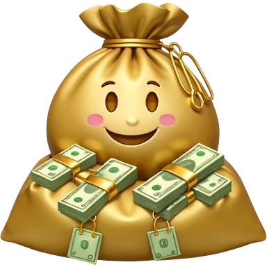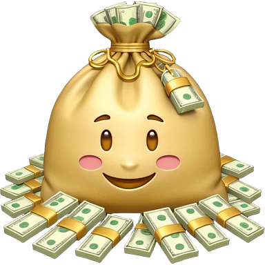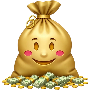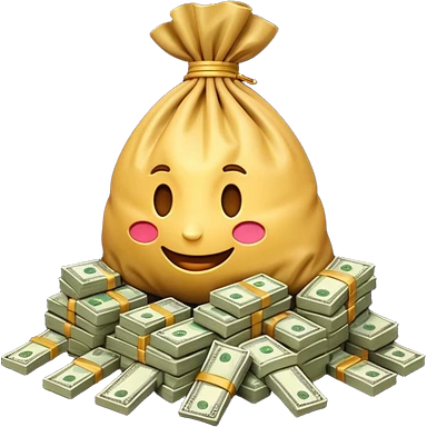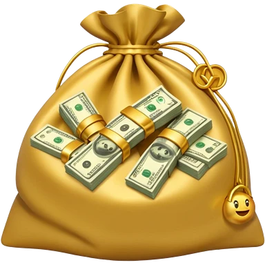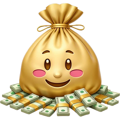 Luxury 3D emoji, overflowing money bag, stacks of cash, premium lighting, rich glossy look, ultra clean, transparent background emoji