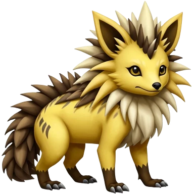Colorful fantasy-Zigzagoon-Jolteon-echidna-civet-Trick-sergal-fusion-hybrid-animal-creature, full body emoji