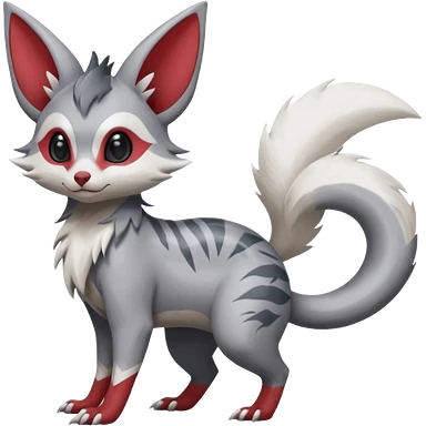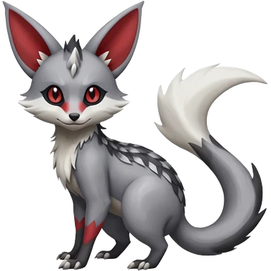 Lykoi-Fennekin-Electrike-Luxray-fusion-hybrid-animal-Fakémon-creature, full body, thin long sleek scaly tail, intricate markings emoji