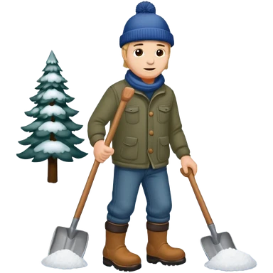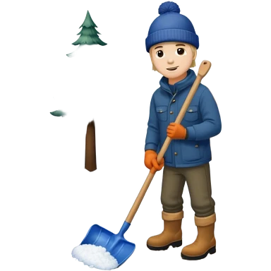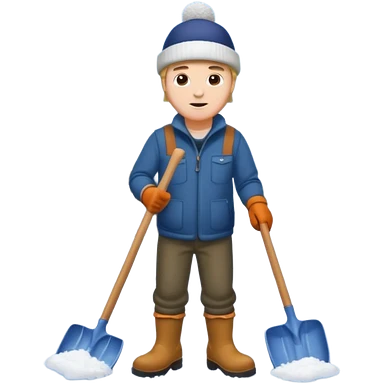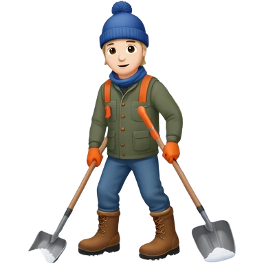 Man wearing boots and a toque shoveling snow in his driveway emoji