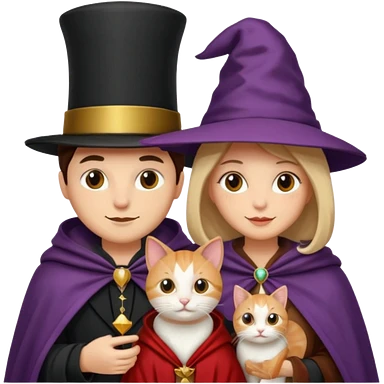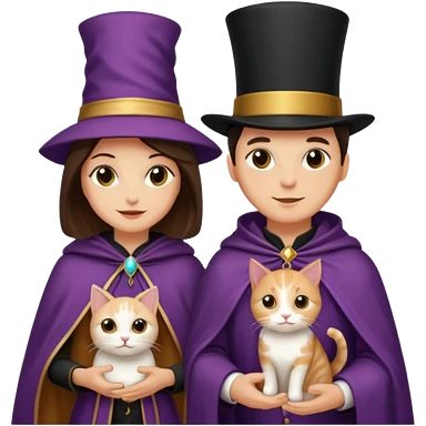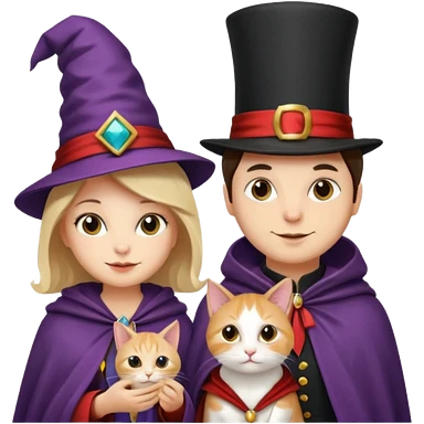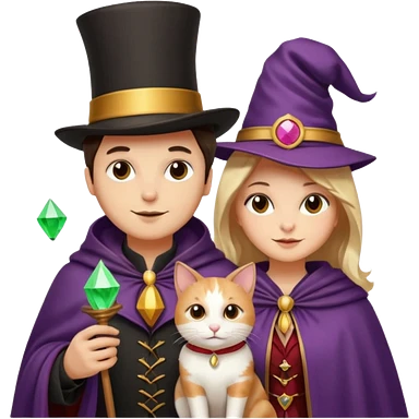 magician couple and their pet cat emoji