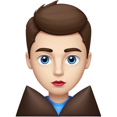 make a white American boy with blue eyes long eyelashes huge huge head in the shape of a triangle a bit of a unibrow wanna be fluffy hair but is straight and tiny Bodie brown hair and uglier and lipstick emoji