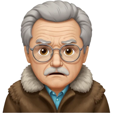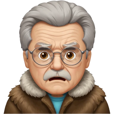 make old old man like 80 with gray hair and fur has HUGE EYE brows and glasses and is always mad and gay emoji