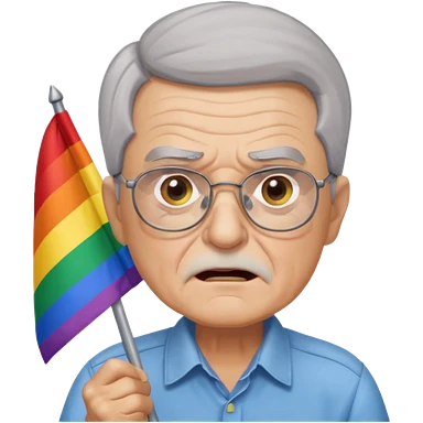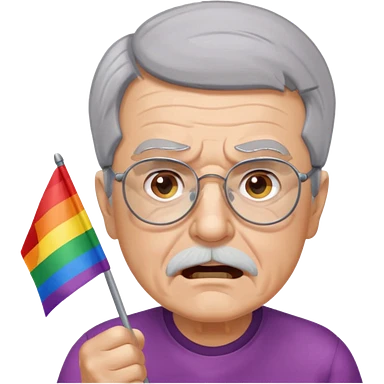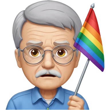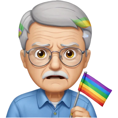 make old old man like 80 with gray hair and fur has HUGE EYE brows and glasses and is always mad and gay holding the rainbow flag emoji