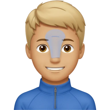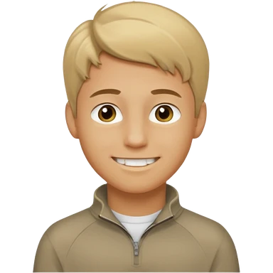 make a boy with comb over dirty blond hair hazel eyes tan white smirky smile and quarter zip emoji