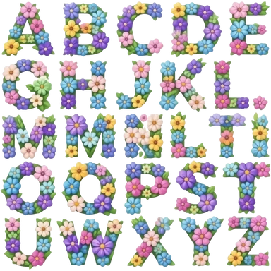 shiny floral all letters a b c d e f g h i j k l m n o p q r s t u v w x y z emoji