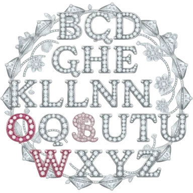 beautiful gemstone shiny floral letters a b c d e f g h i j k l m n o p q r s t u v w x y z Mark the letters q, u e, s t, i o and n bold emoji