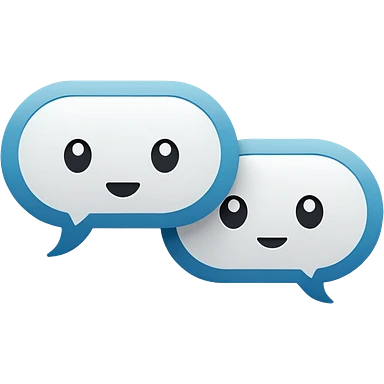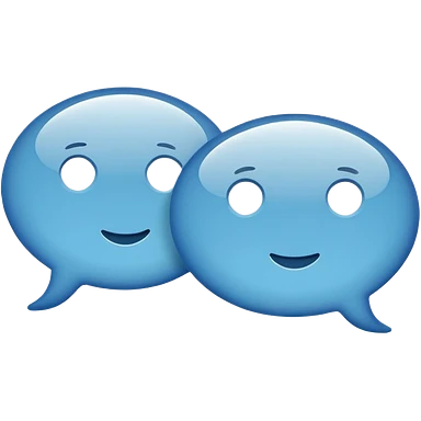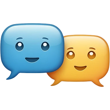 Minimal flat emoji of two speech bubbles facing each other with a small heart or sound wave inside, symbol of informal and authentic conversation emoji