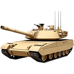 M1 Abrams (2022) – Cinematic-realistic M1 Abrams tank, its imposing desert-tan frame rolling across a war-torn battlefield. The massive 120mm smoothbore cannon swings into position, its engine roaring as it crushes debris under its heavy treads, dust and smoke swirling in the fiery glow of distant explosions. emoji