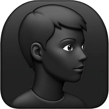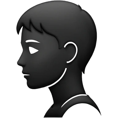 Matte black mannequin in the style of a default avatar. Monochrome with no lines. The eyes should be as matte black as the hair. emoji
