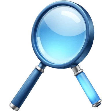 A 3D rendered magnifying glass, tilted right, frosted glass lens, glowing blue light, subtle shadows, purple background, high detail, cinematic lighting, app icon style emoji