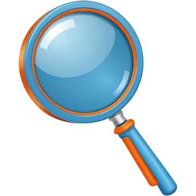 A stylized blue magnifying glass tilted right, flat design, minimalist, vibrant orange handle, white circular background, high resolution, 2048x2048 pixels, vector art, clean lines emoji