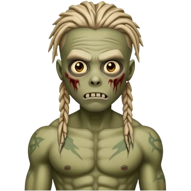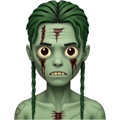 make a zombie boy emoji (headshot only) that has long black dreadlocks and some facial scars emoji