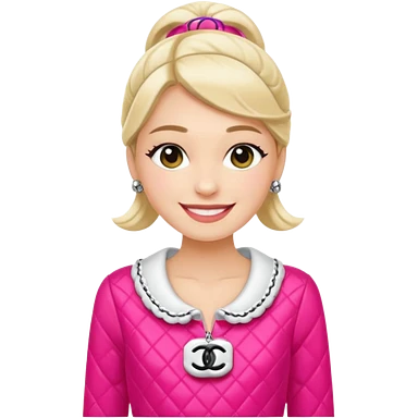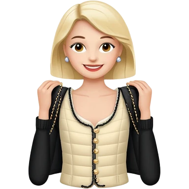ma petite sœur, qui prend un vêtement pour adultes chez Chanel et la emoji