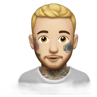 mac miller with a blonde comb over skin fade wearing a blue suit diamond necklace emoji | AI Emoji Generator
