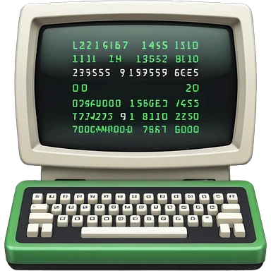 mac os icon code computer retro terminal, black, green white, numbers on the screen emoji | AI Emoji Generator