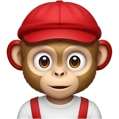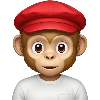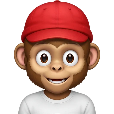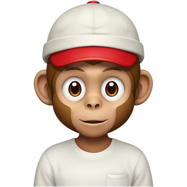 Macaco de camisa branca e boné vermelho emoji