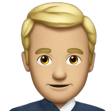 figure of Emmanuel Macron with an oversized head and small body, standing, wearing a dark navy suit and red tie, highly recognizable face, simplified details emoji