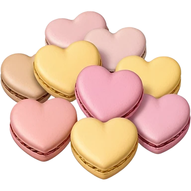 Macaroons in the shape of hearts in soft pink, beige and yellow pastel colors emoji