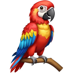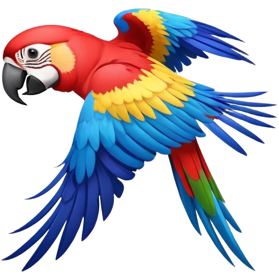 cinematic-macaw-realistic-full-body-standing-emoji,-vibrant-feathers-glowing-with-rich-reds,-blues,-and-yellows,-head-tilted-dramatically,-curved white-beak-gleaming,-piercing-dark-eyes-exuding-confidence,-simplified-yet-realistic-focused emoji