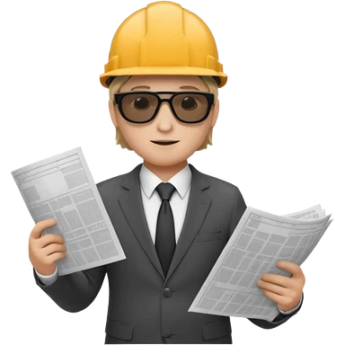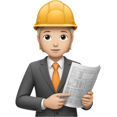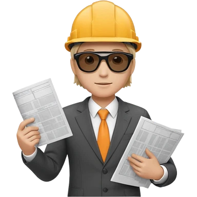 mach mir einen Trader der an der börse handelt mit anzug und einem bauarbieter helm und einem bauplan in der hand emoji