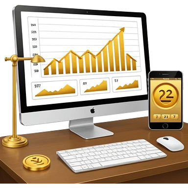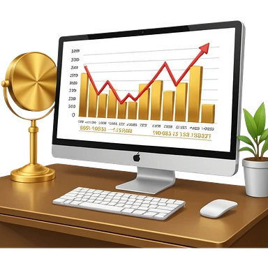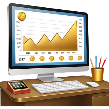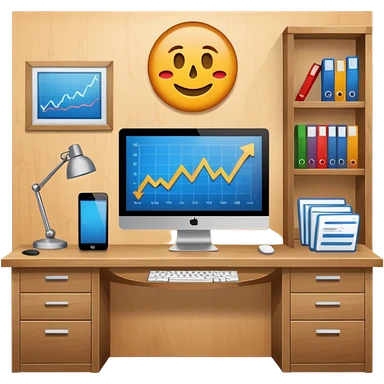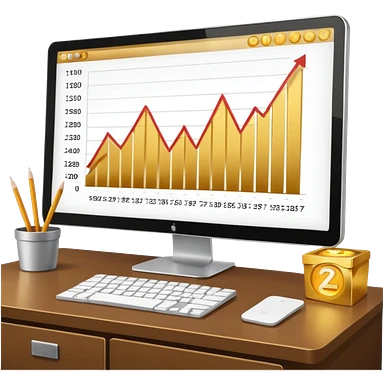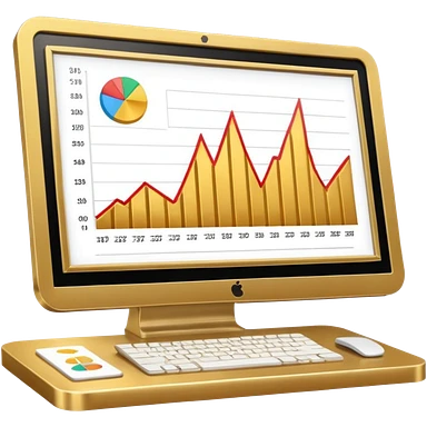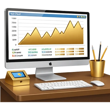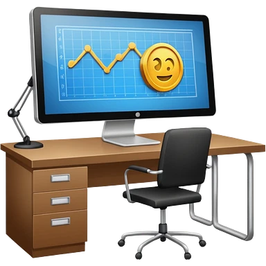 Mach mir einen schreibtisch mit einem bildschirm drauf wo mann einen Chart sieht von Gold emoji