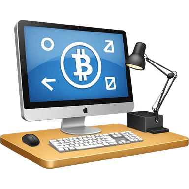 Mach mir einen schreibtisch mit einem bildschirm drauf wo mann einen Crypto chart sieht emoji