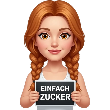 sexy girl with long ginger braids and ginger eyes wearing a white tanktop is holding a black sign with ...EINFACH ZUCKER written on it emoji