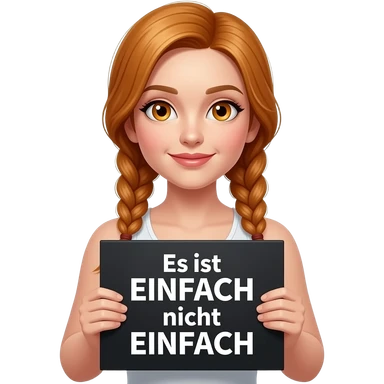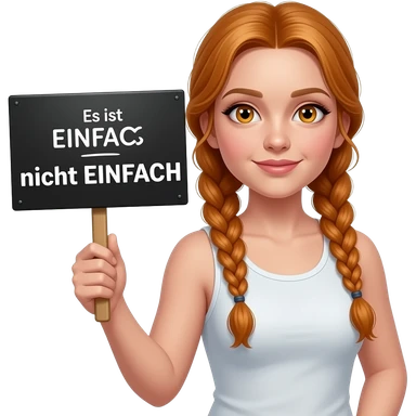 sexy girl with long ginger braids and ginger eyes wearing a white tanktop is holding a black sign with Es ist EINFACH nicht EINFACH written on it emoji