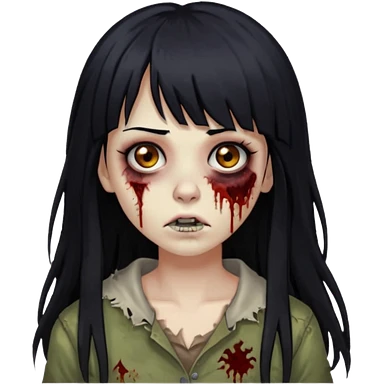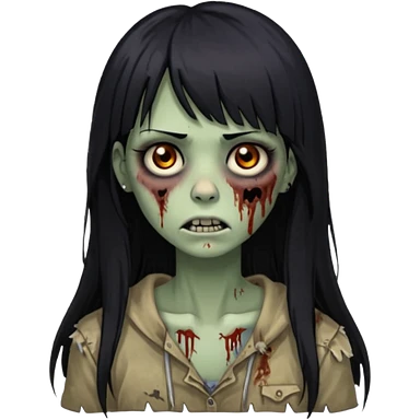 Zombie woman with long black hair and bangs, a nose piercing, and brown eyes. emoji