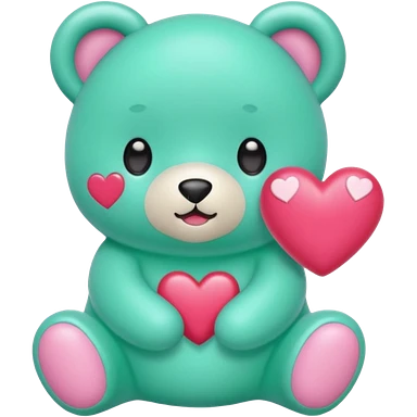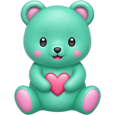 Oso gummy color verde agua corazón rosa kawaii emoji